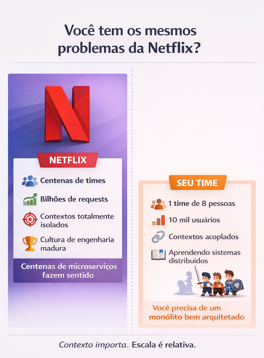 É escolher a arquitetura certa pro problema certo no momento certo.