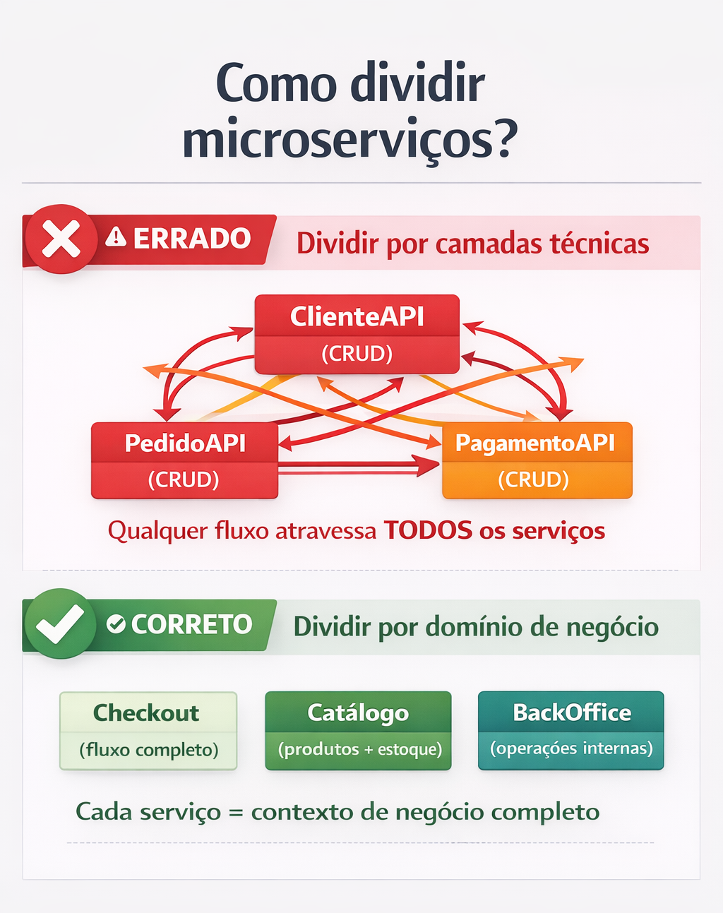 - Chamadas HTTP síncronas entre serviços são um red flag